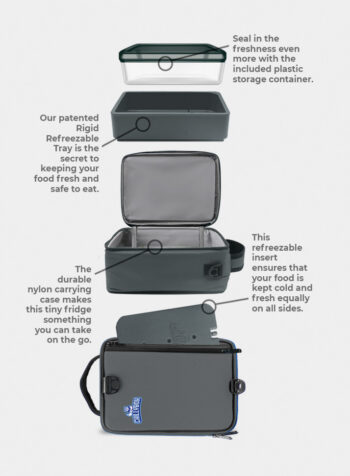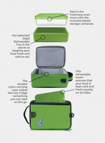 Did you know that when the temperature of most food rises above 40 degrees Fahrenheit, bacteria on that food can start to grow and multiply rapidly? ChillyBox is designed to keep your food fresh, crisp, and, most importantly, safe to eat. It also keeps your drinks cold and frosty, too. How does it work? It’s simple—when you combine our durable, high-quality insulated lunchbox with our patented rigid refreezable tray and top it off with our refreezable lid insert, you get an insulated force field of coldness that surrounds the contents of your ChillyBox. This protection keeps your food cool for hours, preserving its flavor and keeping it safe to eat. Remember, it’s patented—that’s means there’s no other product on the market like it! Keep your food fresher for longer, and save money by not wasting groceries. On the road, at the office, or on the job site, ChillyBox is the best way to keep your food and drinks cold and fresh for later. Think outside the lunchbox!